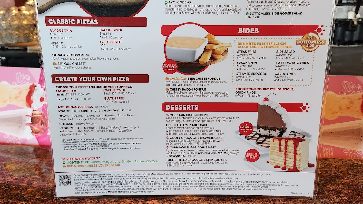 Red Robin Gourmet Burgers and Brews Menu